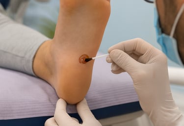 El tratamiento de papilomas plantares permite eliminar de forma segura y eficaz estas lesiones víricas que causan dolor y molestias al caminar. En nuestra consulta de podología realizamos un diagnóstico preciso y aplicamos terapias específicas —como métodos químicos, físicos o láser— según el tipo y profundidad del papiloma. Nuestro objetivo es lograr una eliminación completa, reducir el riesgo de contagio y ayudarte a recuperar una pisada cómoda y libre de dolor.