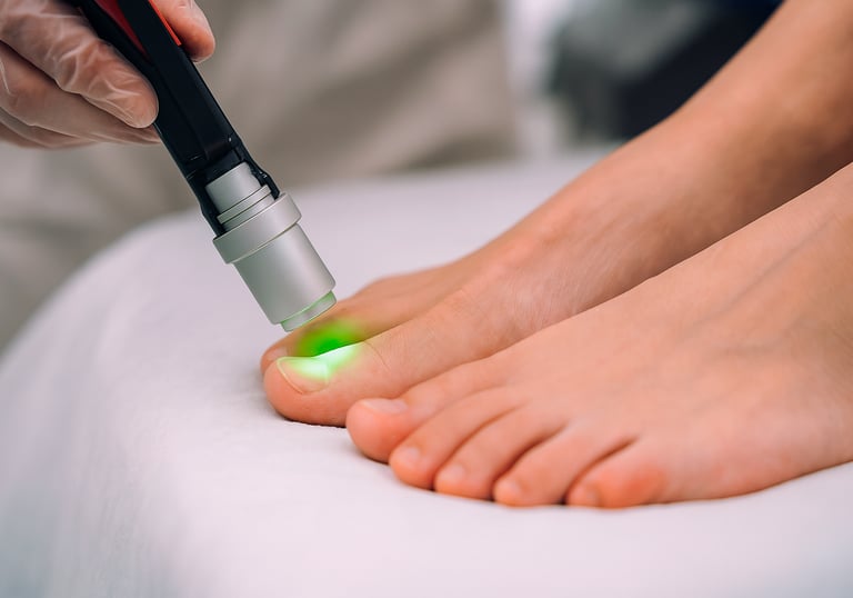 La terapia láser en podología es una tecnología avanzada que utiliza luz concentrada para tratar diversas afecciones del pie, como, Fascitis plantar y espolón, Tendinitis de aquiles, Verrugas plantares, Uñas encarnadas, Hongos en las uñas.Este tratamiento no invasivo ofrece una alternativa eficaz a los procedimientos quirúrgicos tradicionales, minimizando el dolor y el tiempo de recuperación para los pacientes.